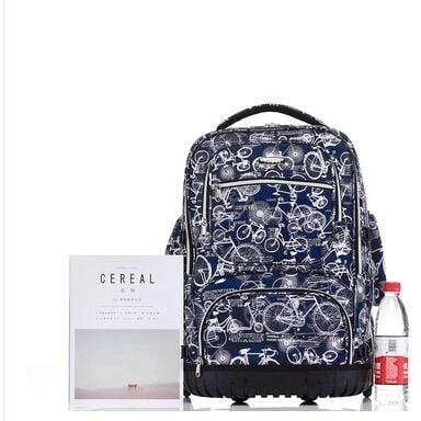 La couleur noire du sac lui donne une allure chic tandis que les dessins des petits vélos blancs ajoute une touche d’originalité à l’ensemble. Les roulettes intégrées facilitent grandement le transport, tandis que la poignée télescopique rétractable permet un ajustement personnalisé en fonction de votre taille.