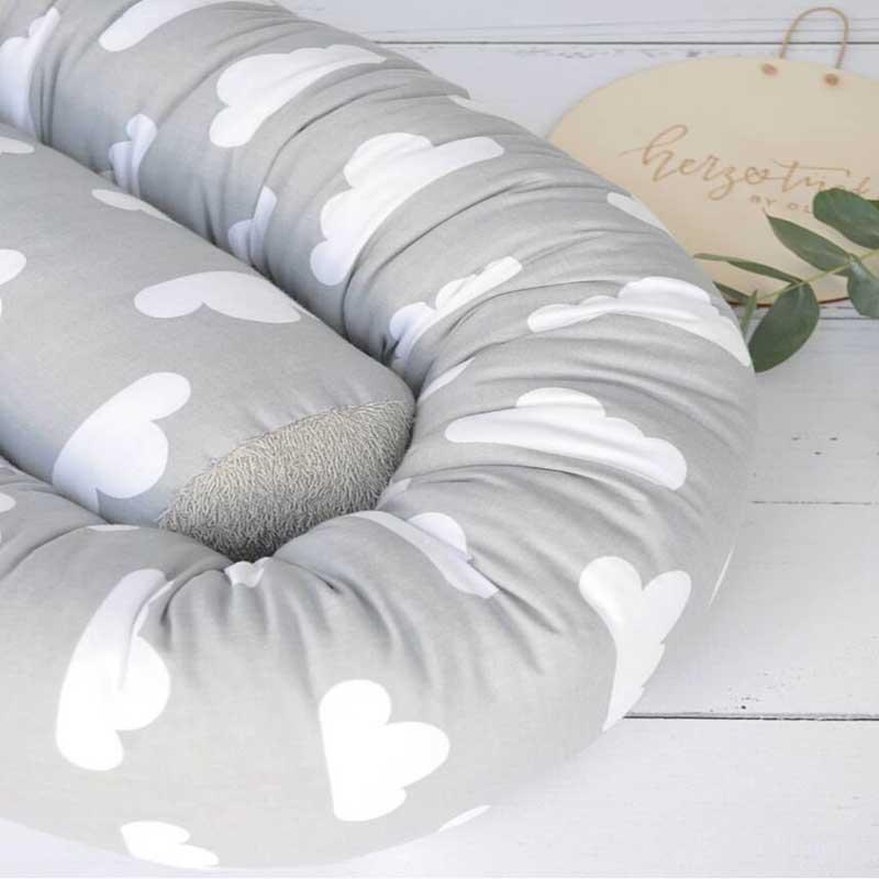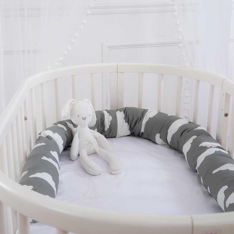 Avec ce tour de lit de 2 mètres de longueur à motif nuages, votre bébé aura des étoiles plein la tête ! Un accessoire plein de douceur qui accompagnera le sommeil et la sérénité de votre enfant.