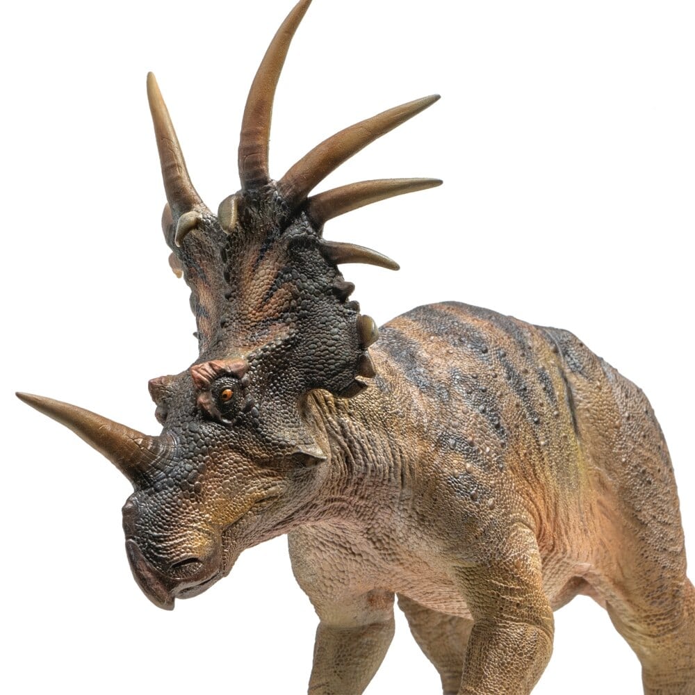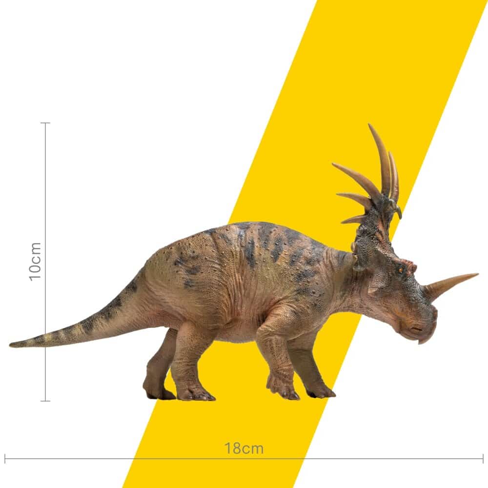 Notre figurine de dinosaure Premium Tony le Styracosaure est une figurine ultra réaliste qui capture tous les détails incroyables de ce remarquable dinosaure. Mesurant 18 cm de long, Tony est peint à la main avec une précision proche de la réalité et présente les caractéristiques suivantes.