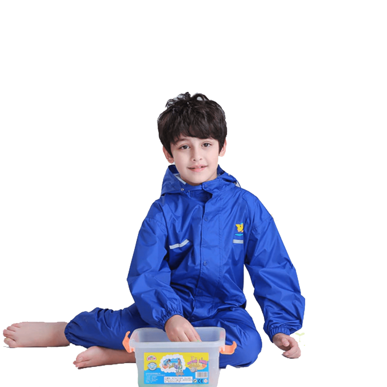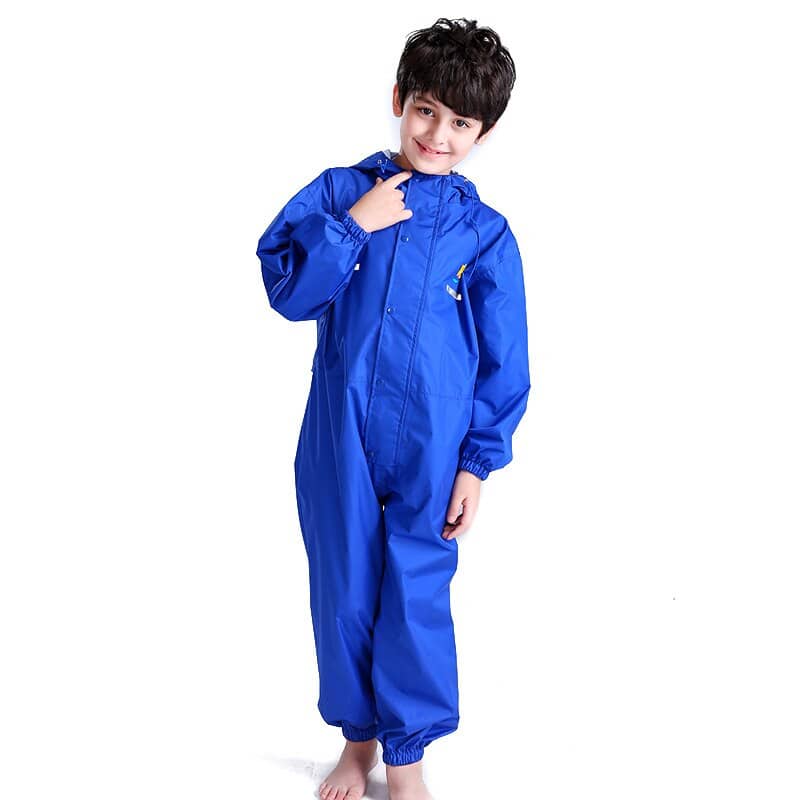 Plus une goutte ne le mouillera ! Cette jolie combinaison bleue saura protéger votre enfant du bas de ses chevilles jusqu’au haut de sa tête. Il pourra ainsi jouer dans la boue, sauter dans les flaques ou même jardiner sous la pluie sans risquer d’endommager ses vêtements. Laissez-le vivre les jours de pluie comme tous les autres jours !